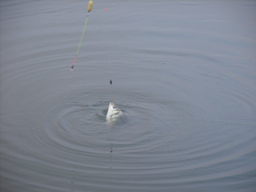 아침 8시경 5치급 붕어가 낚이네요... 찌를 한 뼘이나 올립니다.