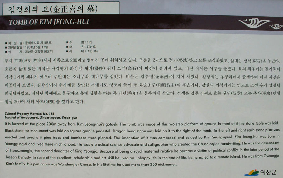 철수길에 추사 김정희 선생의 묘와 고택을 들려보았습니다.