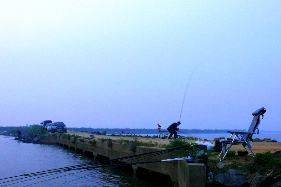 밤에 낚시를 할 여건이 되지 않기에 1시경에 차에서 휴식을 취한 뒤 새벽 4시 30분경 다시 채비를 던지고 입질을 기다리는데