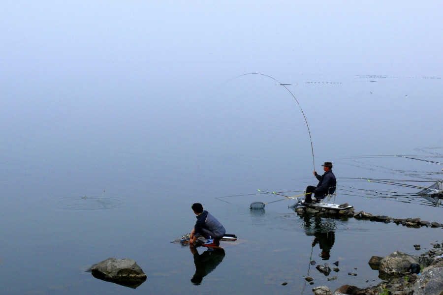 그래도 전날 들어간 밑밥이 있는데 하고 자리를 고집하며 찌를 응시하는데 날이 밝아질 무렵에 4.4칸대의 찌가 두마디 상승을 한다.