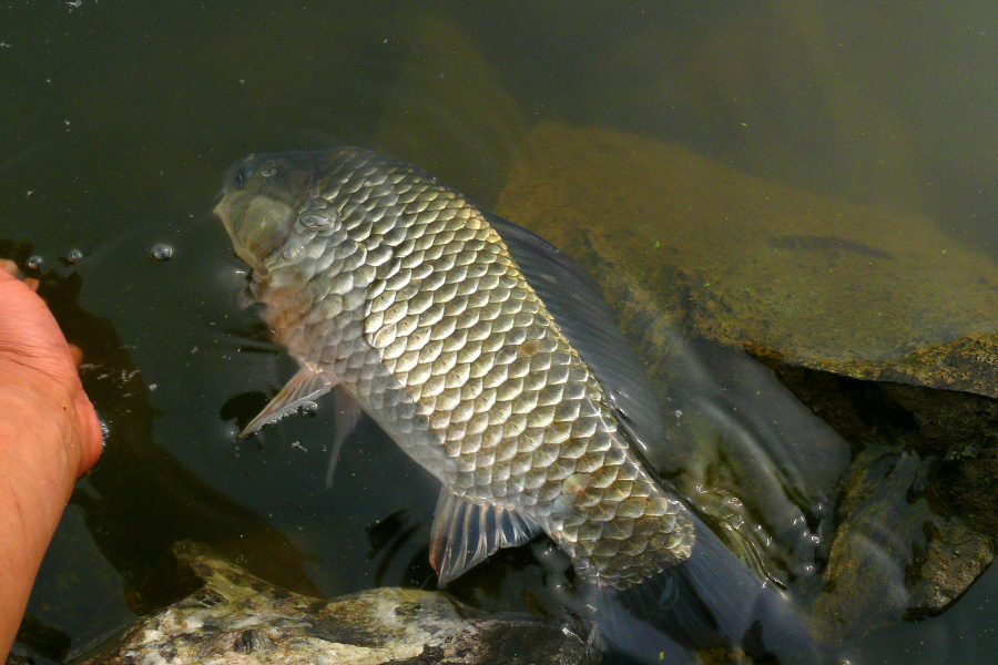 필자가 붕어를 걸어 내고 사진을 찍으면서 할 일을 다했다고 생각을 할 때