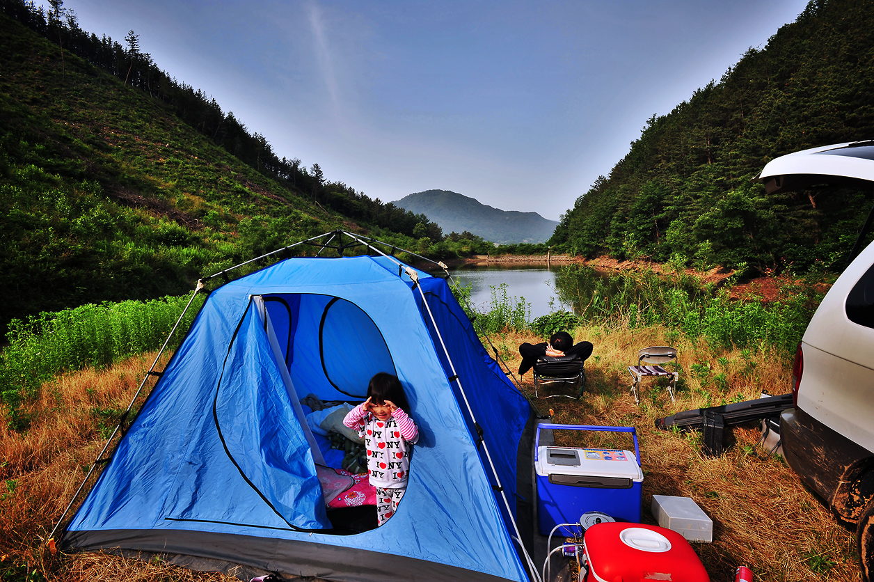 맑고 깨끗한 소류지에서의 소풍