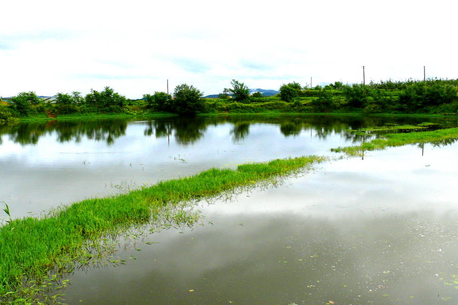 뗏장수초가 잘 발달되어 있는 소류지 입니다.