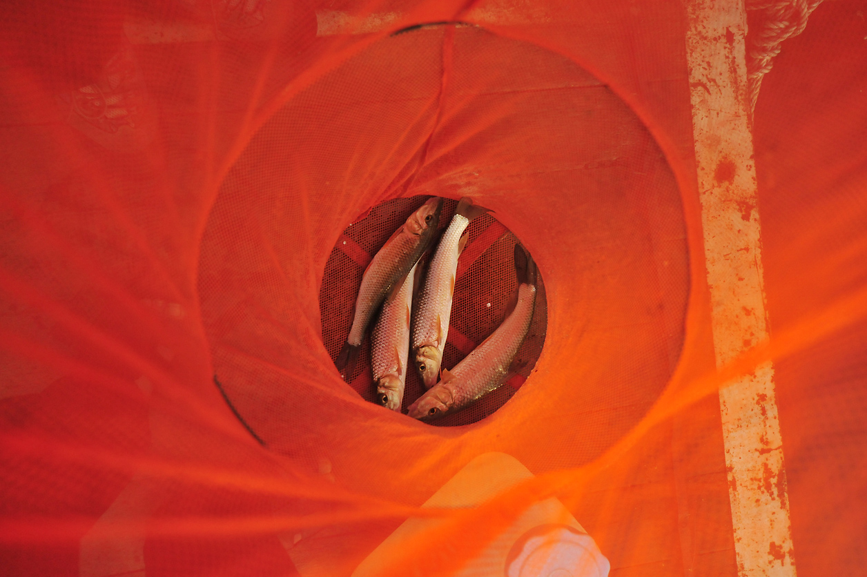 필자의 살림망엔 그저 빈살림망을 찍을 수 없어 하는수 없이 가두어 논 누치녀석들 뿐이다.