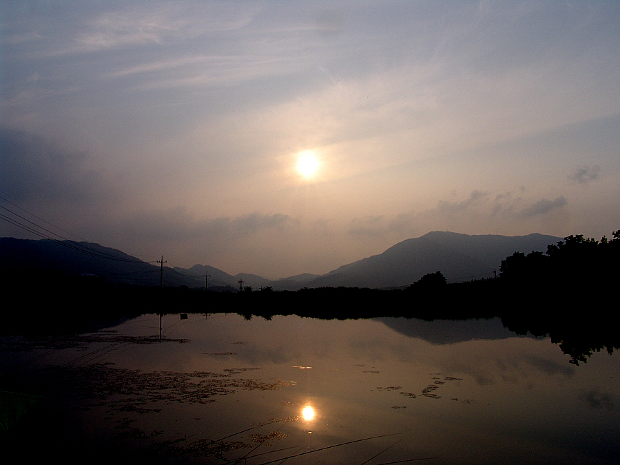 아침에 자욱한 안개사이로 보이는 태양이 그리 따갑지는 않습니다.