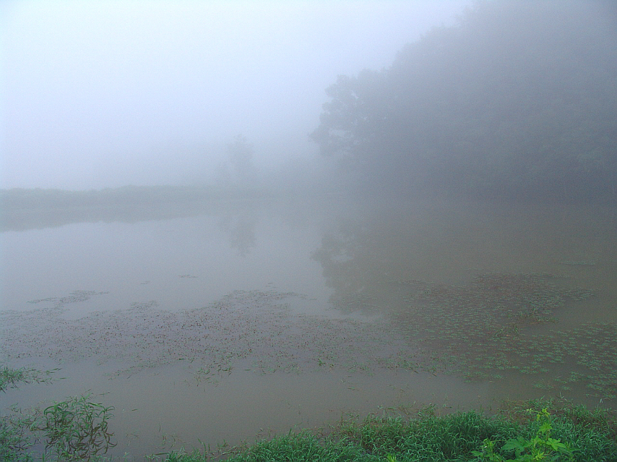 안개가 많이 끼어있는 소류지 풍경입니다.