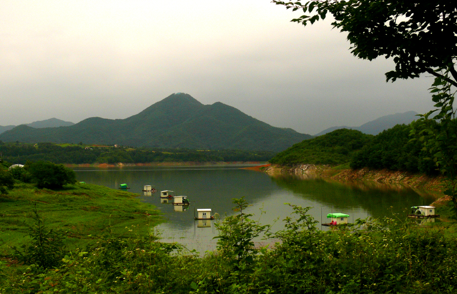 오름 수위의 충주호.