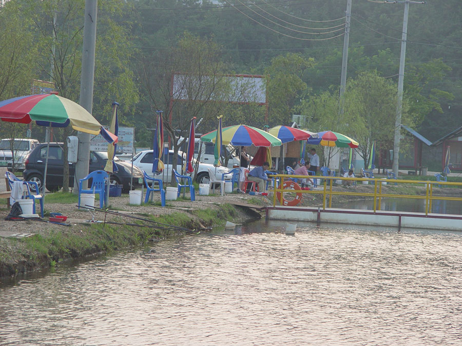 입구쪽에 조사님들이 자리하여 낚시를 즐기고 계십니다.