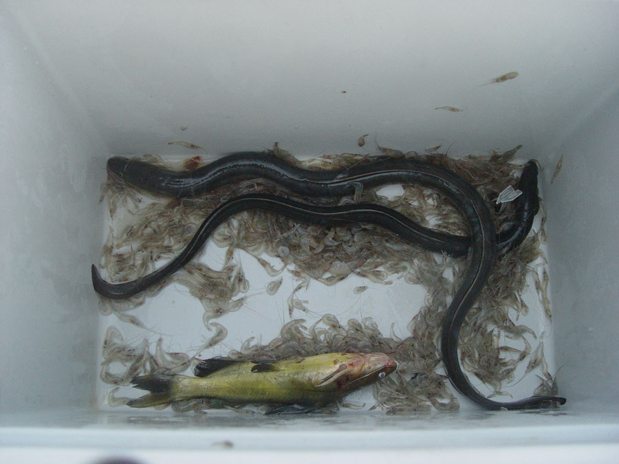 우안 뒤쪽에 자리하신 분들은 뱀장어 두마리와 빠가사리 한 마리를 하셨습니다.