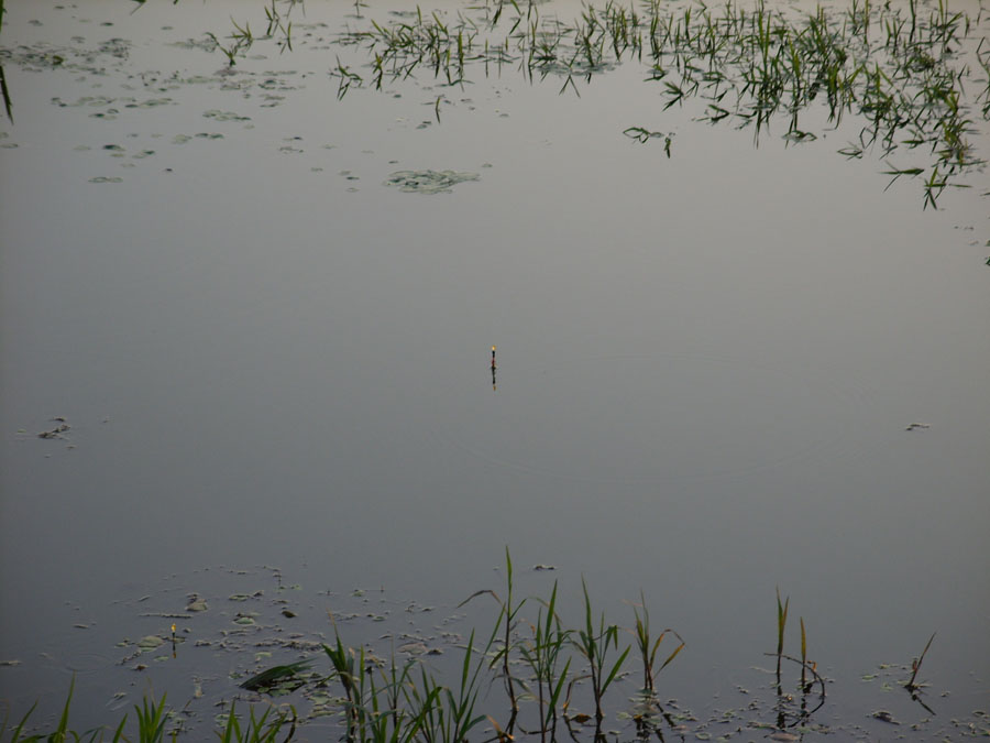 숨을 죽이고 기다리니 무겁게 던져 놓은 찌가 서서히 하늘을 가르며 솟아오른다.