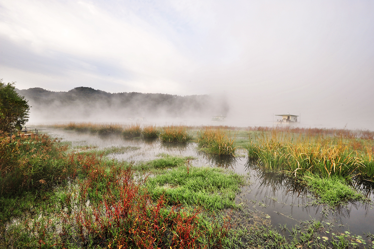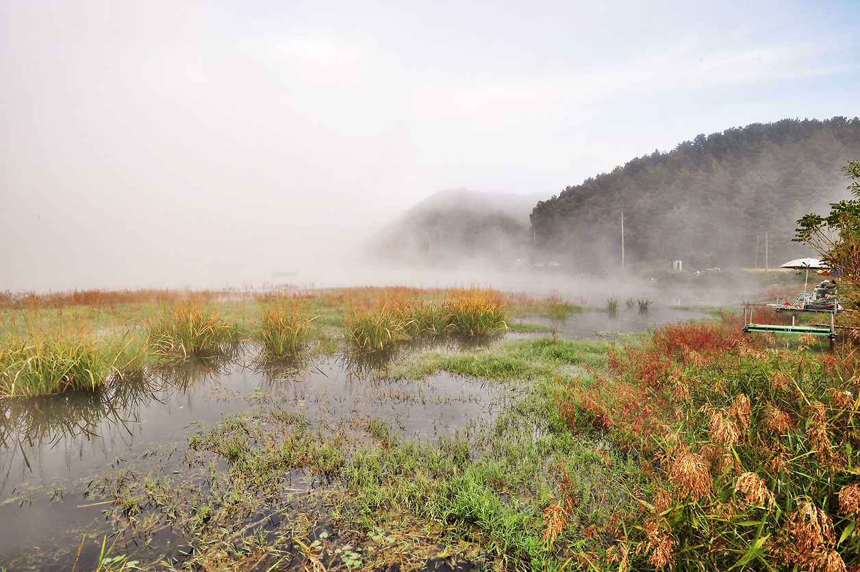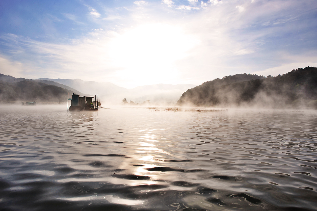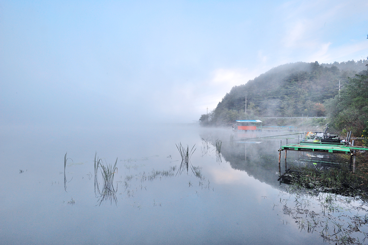 아침 5시 30분에 일어나 낚시고 뭐고 환상적인 물안개에 취해 (어제 먹은 술도 취해^^) 카메라를 들고 이리저리 뛰어 다니기 바빴다.