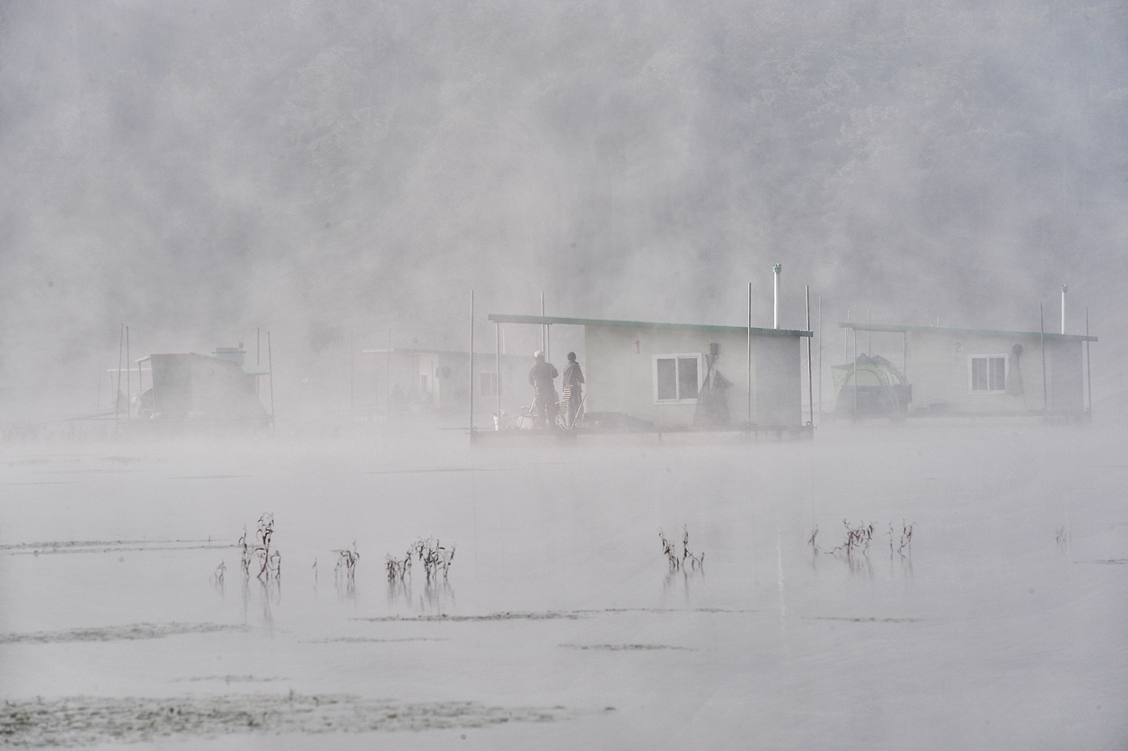 찌가 잘 보이지 않을 정도로 물안개가 환상이었습니다.
