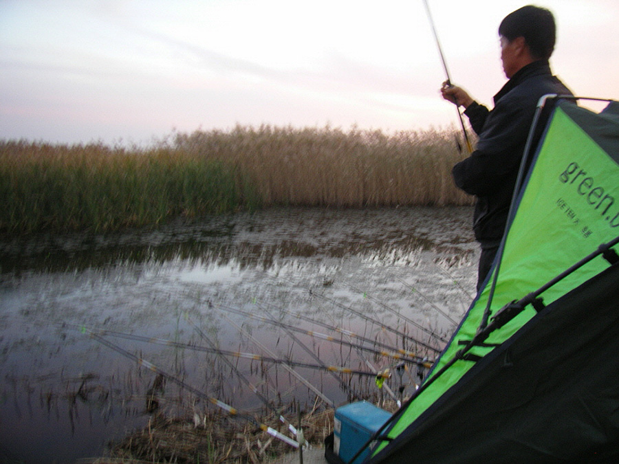 어느새 동쪽하늘이 밝아오고 잠시 한눈을 판 사이 자빠져 있는 찌에 챔질하는 순간 빈 바늘만 허공을 가르는 것이다.... 쩝~~