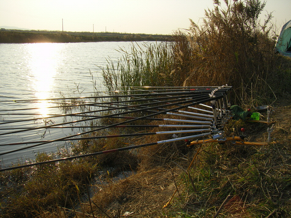 먼저 바닥 여건을 살핀 뒤 낚싯대 편성을 마치고 나니 이미 태양은 서쪽하늘에 걸려 넘어가고 있다.