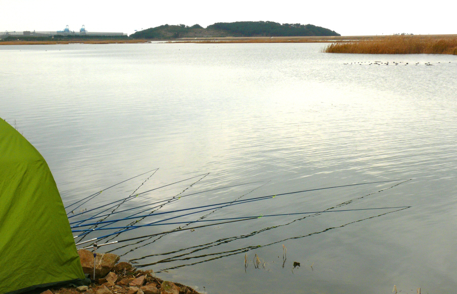 포인트에 진입하고 서둘러 대편성을 하고 밤낚시에 들어 가는데 초저녁에 입질이 몇번 오더니 바람의 방향이 밤이 되면서 바뀐다.