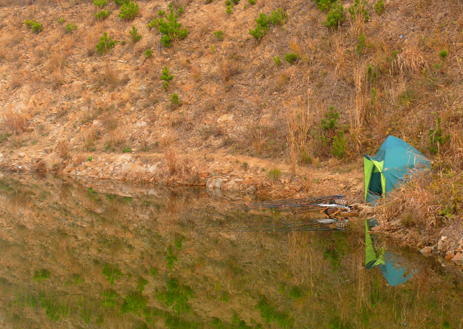밤새 입질이 왔지만 주인은 항상 자리를 비웠습니다.