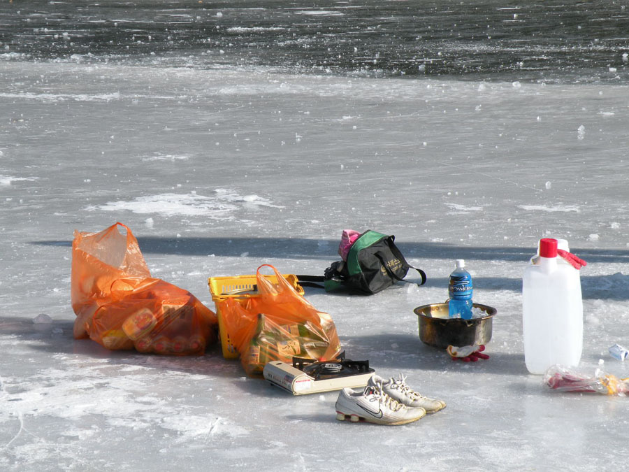 물이 맑아서 그런지 찌도 사용하지 않고, 얼음 구멍을 들여다 보면서 눈과 손의 느낌으로 빙어를 낚아 내시는 분들이 많이 보인다.