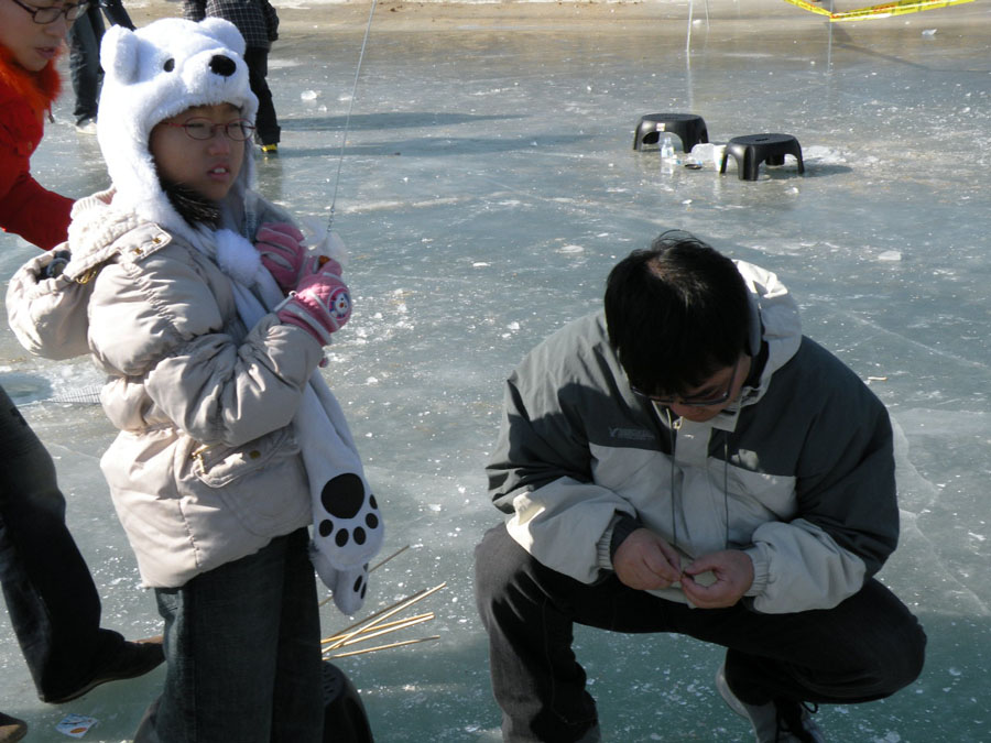 어린이도 낚시 중이네요. | 이런 자세로도 빙어를 잘 낚아요.