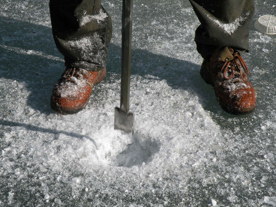 정말 추워서 바로 얼음 구멍이 얼어요.