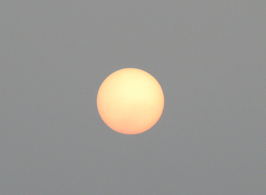 안개로 인해서 태양이 달 처럼 보입니다.