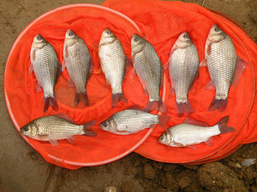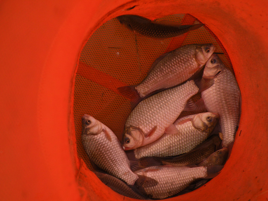 새벽 5시 30분에 기상하여 낚시 자리에 앉아 미끼를 달아 던지고, 자고 있는 캬아님 낚시 자리에 있는 살림망을 들여다보니 6 ~ 8급 붕어가 10여수 담겨있다.