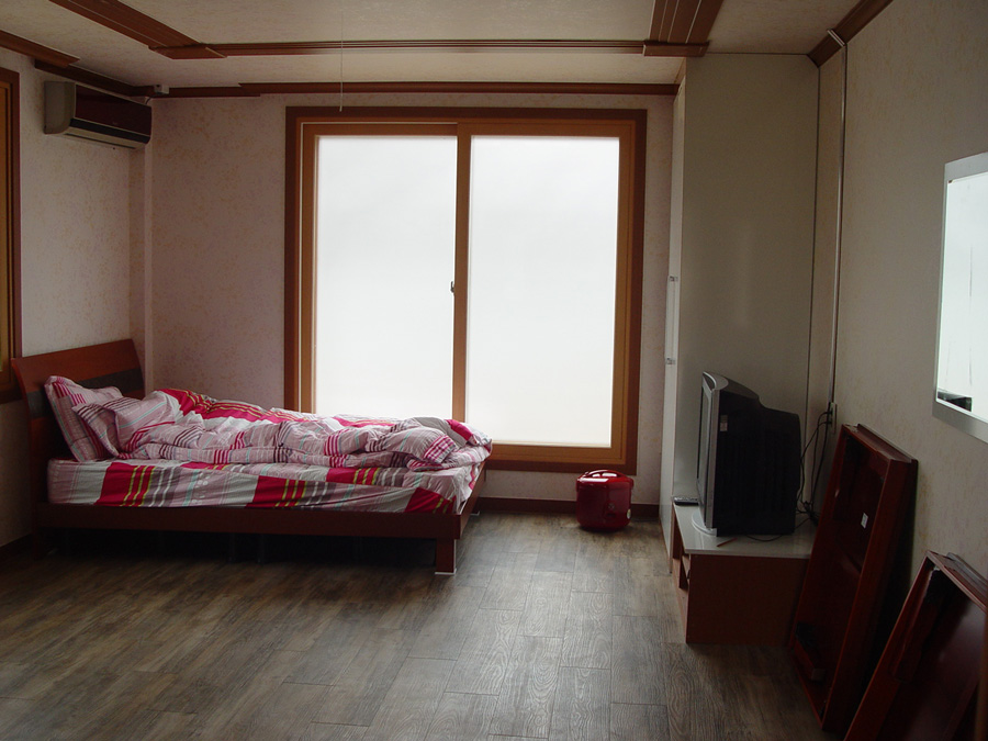 9평의 팬션내부... 냉장고, 취사도구, 에어콘, 샤워장 설비 (사용료 5만원)