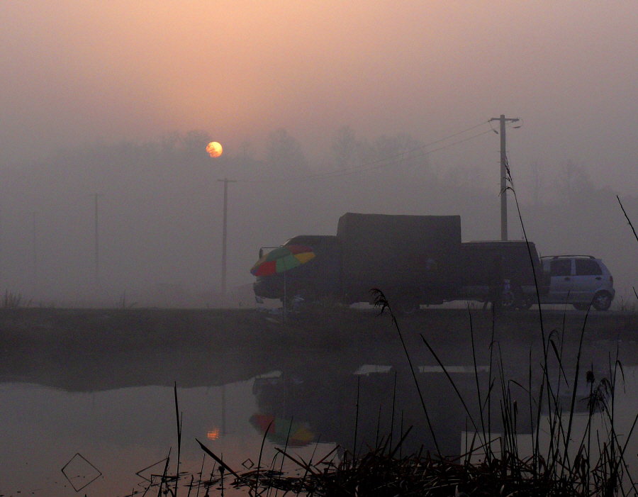 안개가 자욱한 밤이 지나고 아침이 밝아 오는데 안개로 인해 찌를 보기가 힘들 정도다.