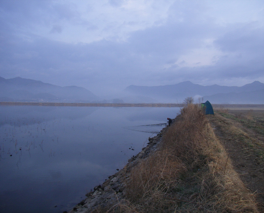 그렇게 밤이 깊을 수록 하류쪽에서는 붕어인지 잉어인지 모를 어종이 밤새 퍼덕입니다.