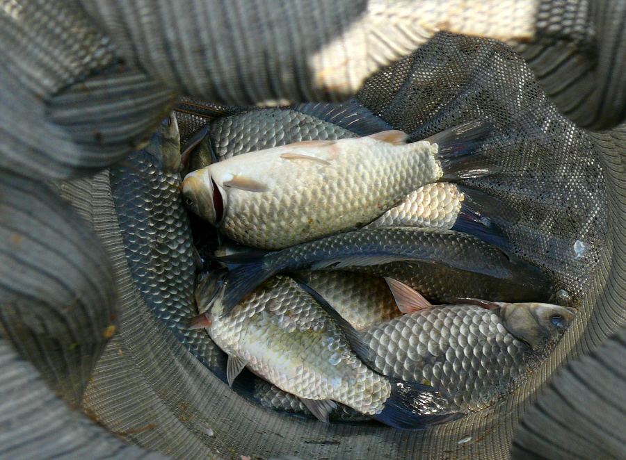 잠시 밤낚시를 한 회원님의 살림망을 들여다 보았습니다.