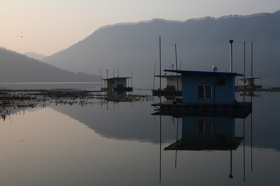 바람 한점 없이 고요한 신포낚싯터 둠벙의 그림
