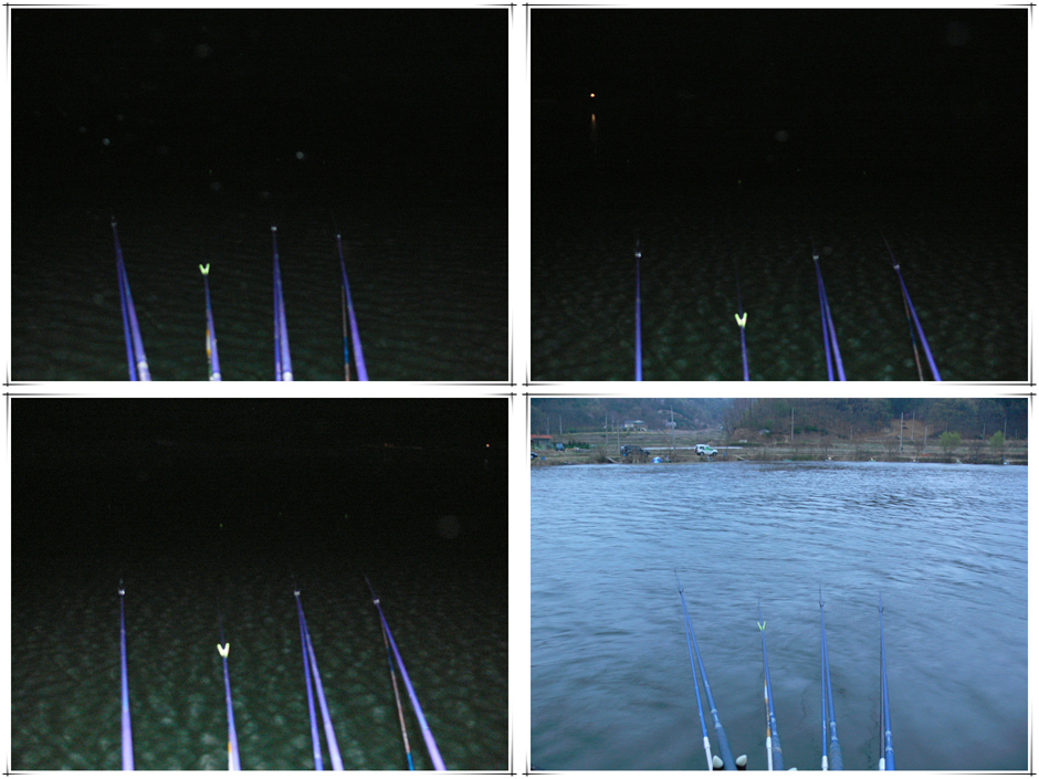 그것을 시작으로 이곳저곳에서 화이팅이 이어지는데 밤조황이 무척 좋을 것같은 예감에 7시경 저녁식사를 마치고 찌불을 달아 던져 놓는다.