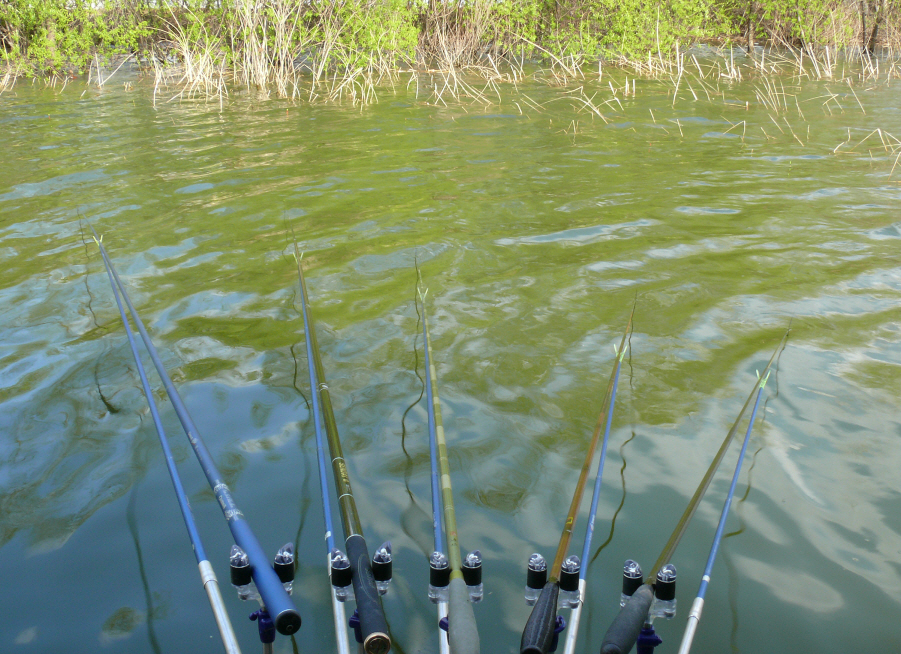 낮에 수초작업을 좀 심하게 한 필자의 자리는 입질이 전혀 없다.