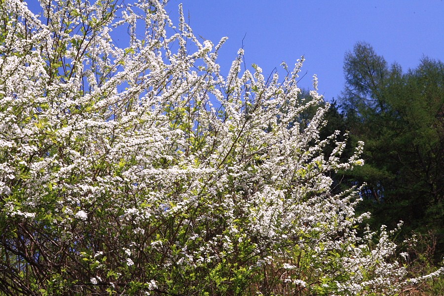 길가에 피어난 한 무리 조팝나무엔 하얀 눈송이가..