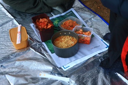 각자 챙겨온 도시락에 라면으로..