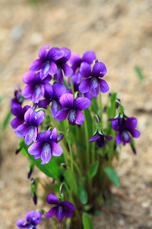 물가 양지바른 곳에서 자라난 제비꽃