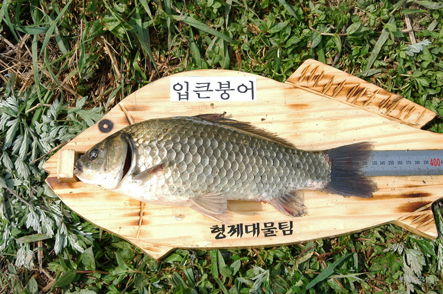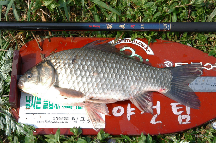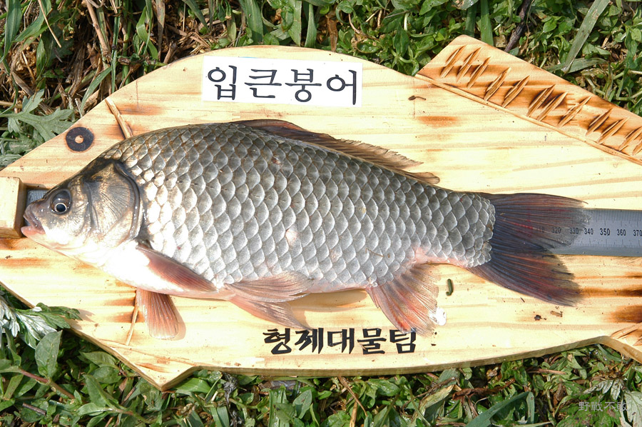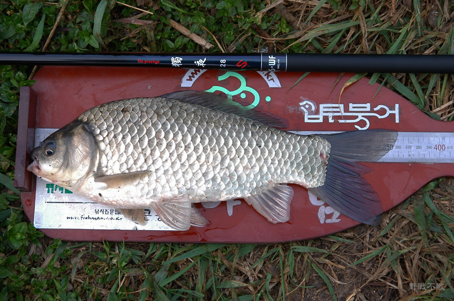 "핑~!!! 쒜액~!!" 거리는 녀석을 한 번~ 강하게 챔질을 하니.. 36cm급 토종붕어가 얼굴을 보인다.