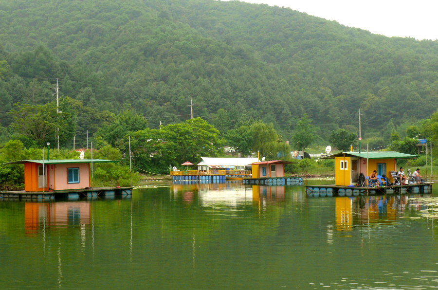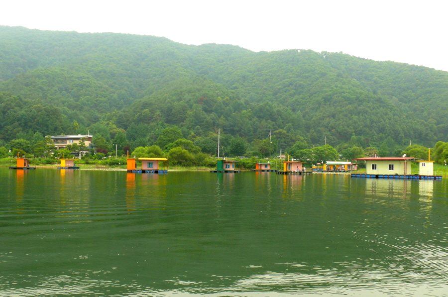 의암댐이 이제 여름철 포인트로 좌대들이 이동을 한 상태다.