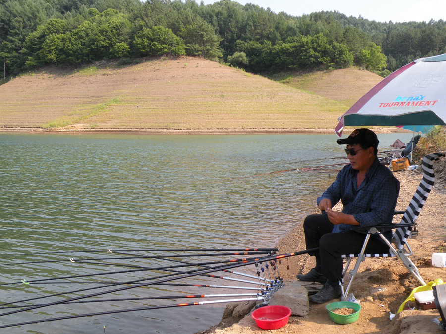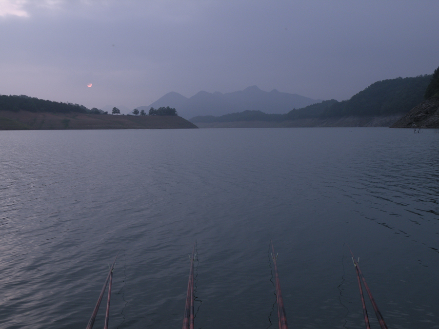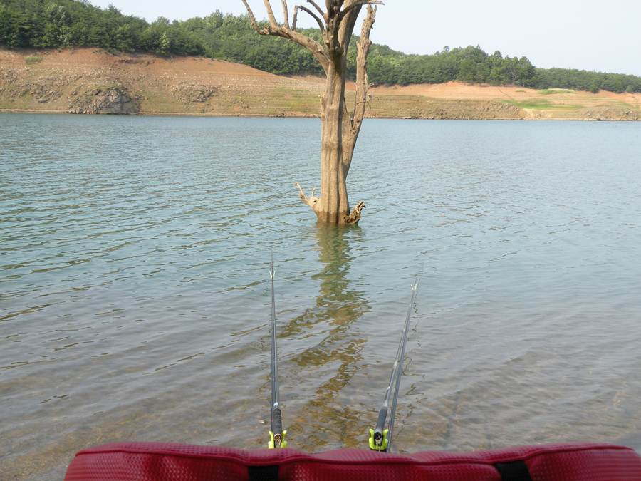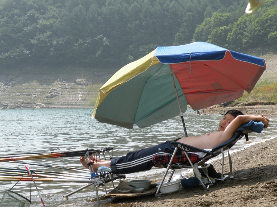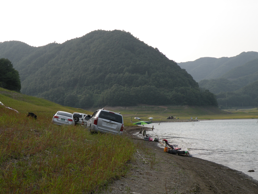 낮에는 폭염이라 파라솔 밑이나 자동차 안에서 휴식을 취하고 해거름에 미끼를 달아본다.