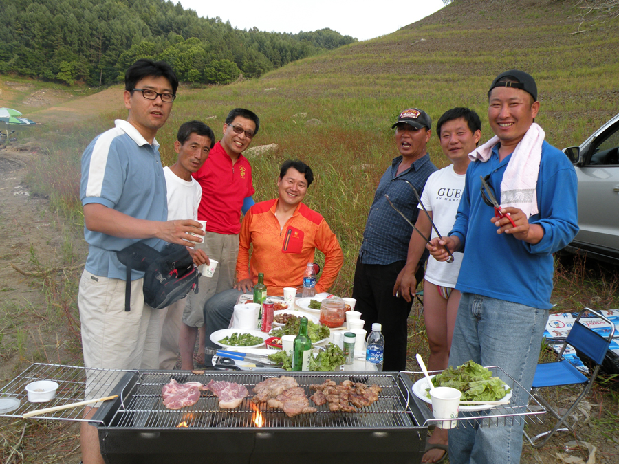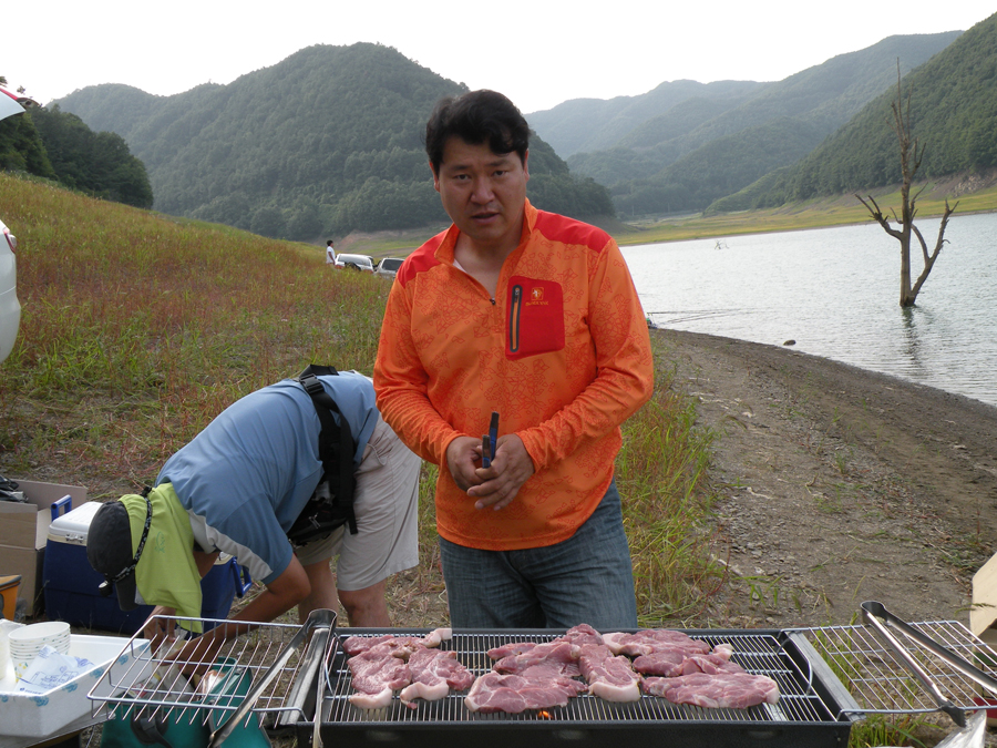 둘째날 나루터님들이 모두 도착하고, 미수조사님이 준비해준 1등급 돼지 목살로 더위를 쫓아내며 소주와 곁들여 입을 즐겁게 한다.^^