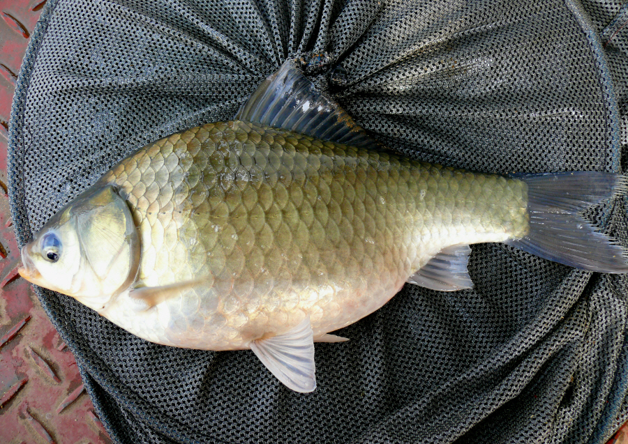 포도월척님이 걸어낸 35센티급 떡붕어를 살펴보니 아직 산란을 하지 않았다.