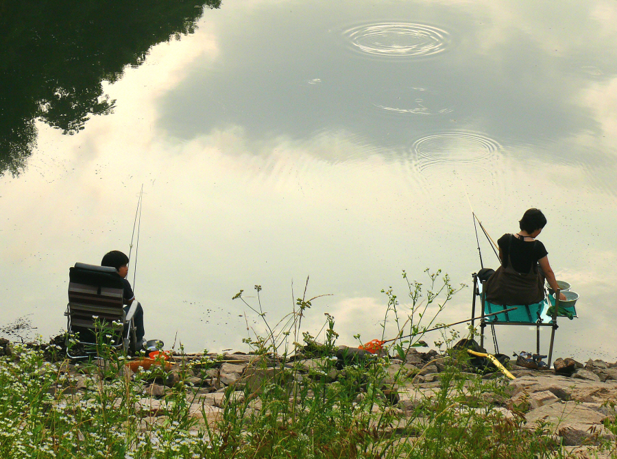 아침낚시를 즐기는 마눌님과 아들입니다.