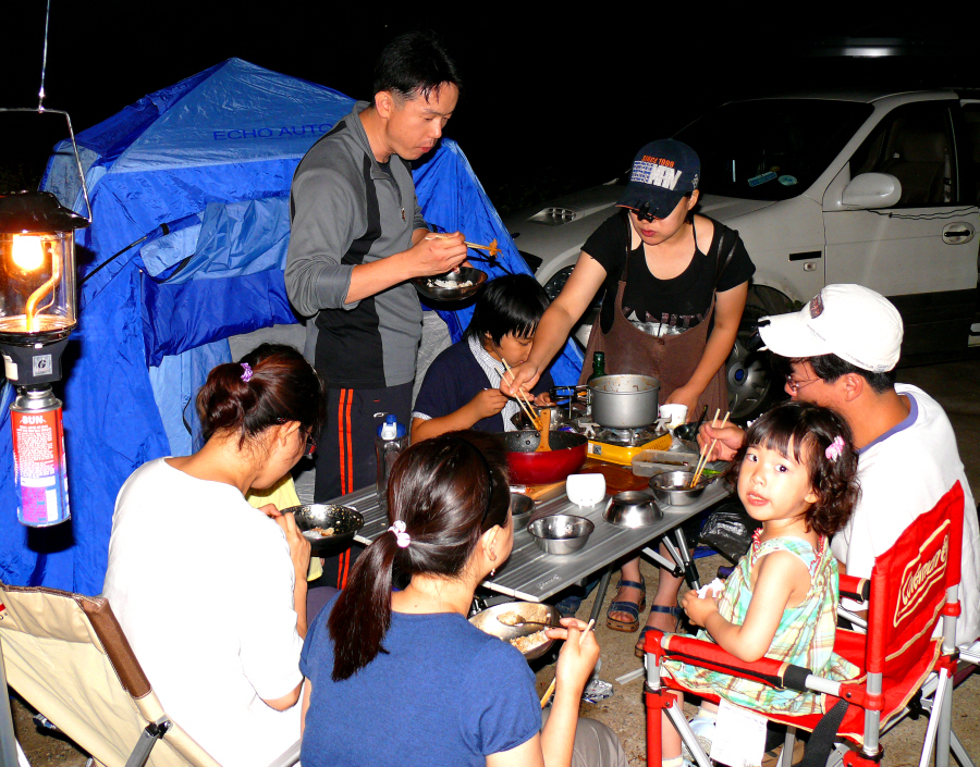 저녁은 콩밭님이 준비해온 돼지 불고기와 코펠밥으로 맛나게 먹은 다음 어른들은 낚시를 하고 쥴리는 민서와 별을 헤면서 밤을 즐긴다.