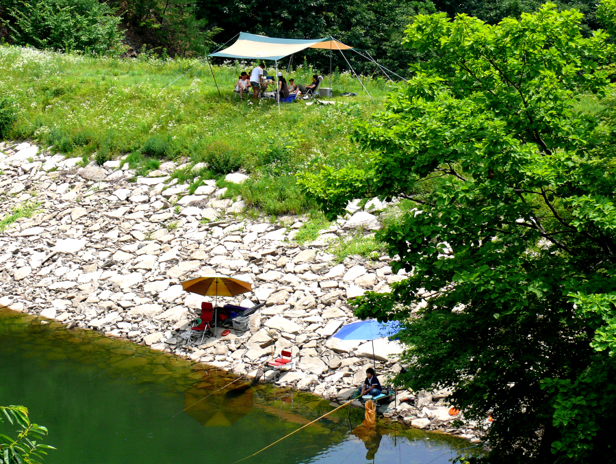 햇살을 피해 제방권에 타프를 치며 보냈던 주말낚시여행.