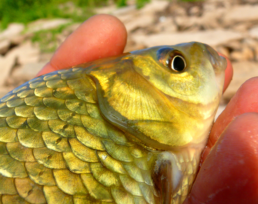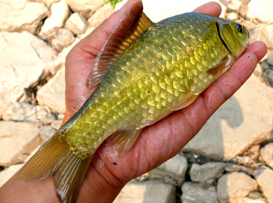 깨끗하고 잘생긴 소류지 7치급 붕어의 얼굴입니다.