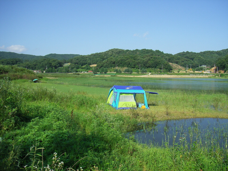 웅덩이 앞 둔덕에서는 아직까지 낚시할 수 있는 자리가 있습니다.
