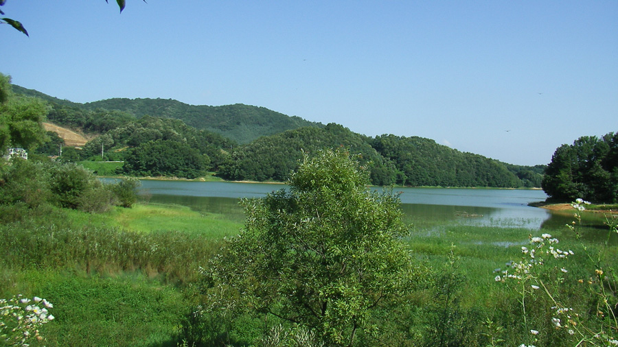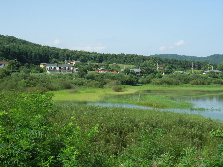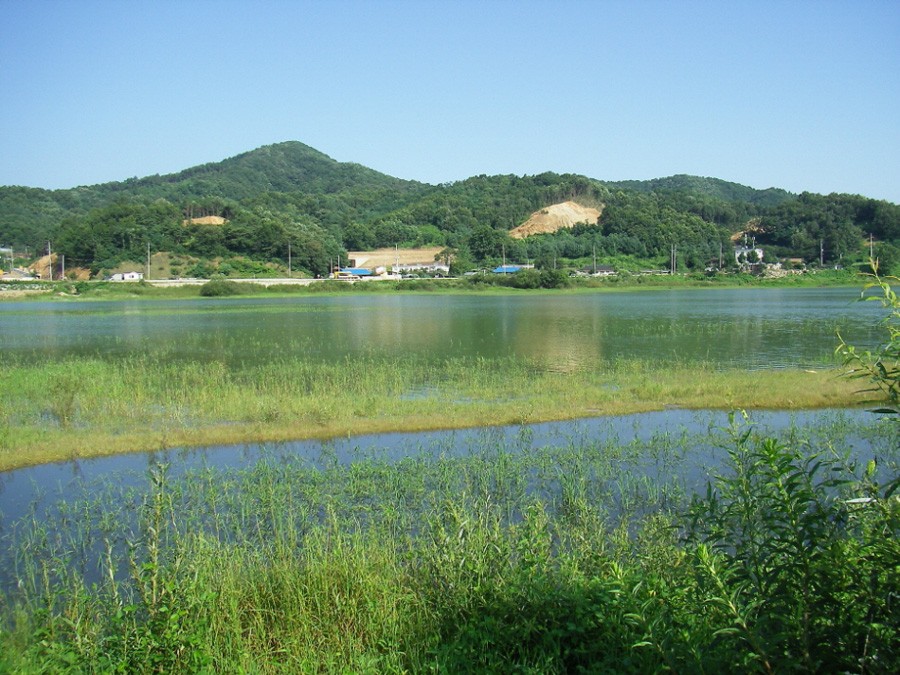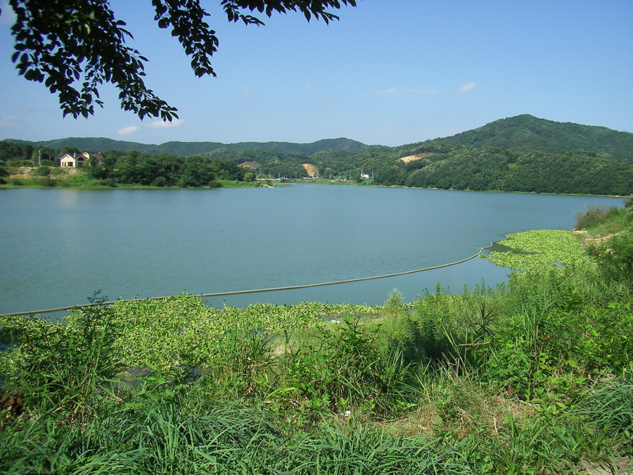 지난 한해동안 수문공사로 인해 물이없던 용설지가 오랜만에 붕어얼굴를 보여주고 있다.