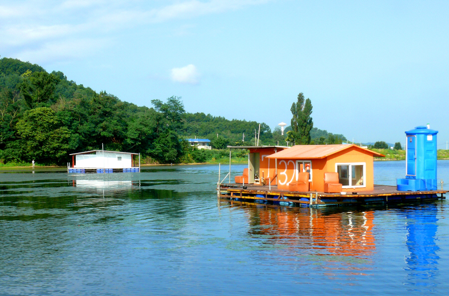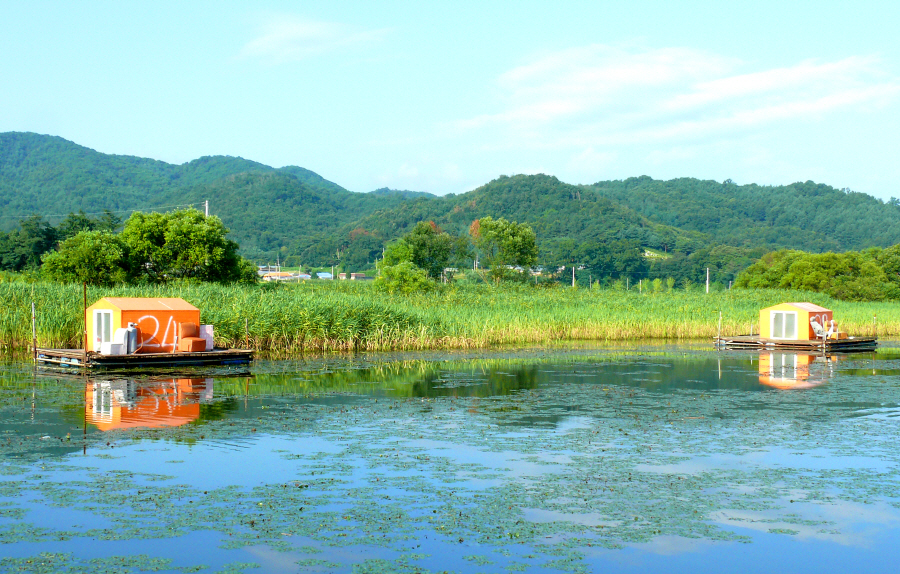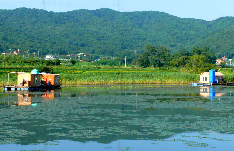 관리소 건너 중류권에 위치한 수상좌대들 모습