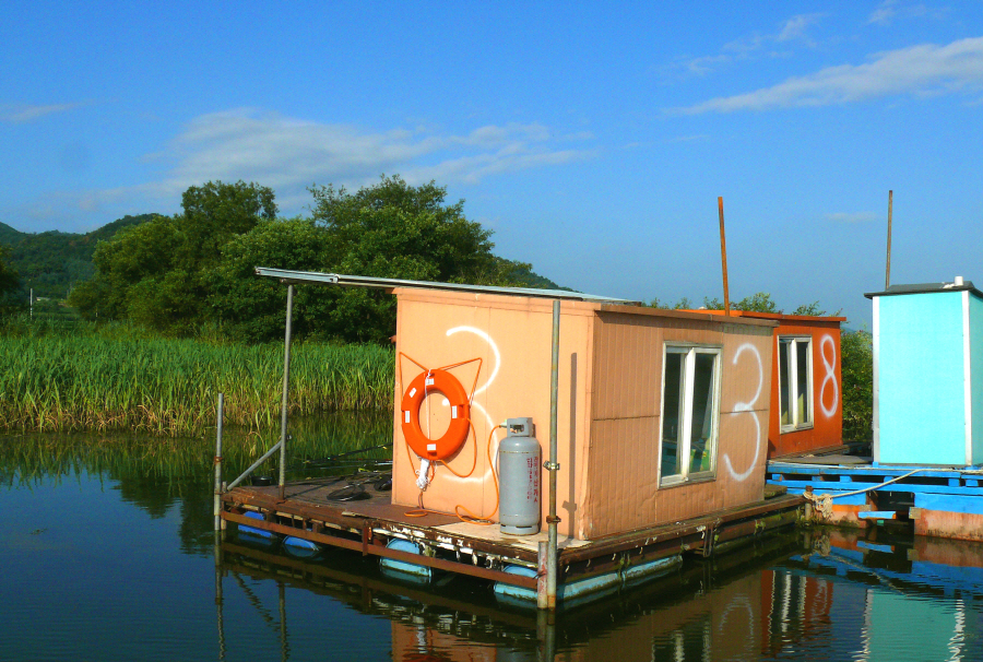 관리소 건너편 상류권 수초대에 위치한 수상좌대들 모습