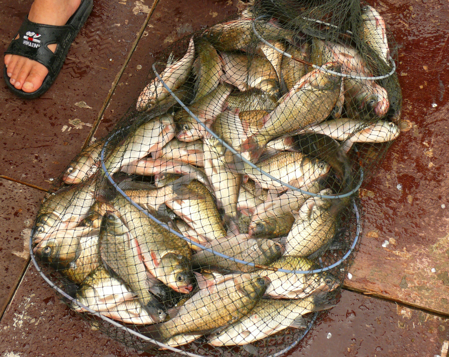 수심은 1.2미터였지만 붕어를 걸기만 하면 이리저리 튀어 다니는데 힘이 좋은 것이 안골지 붕어의 특징이다.