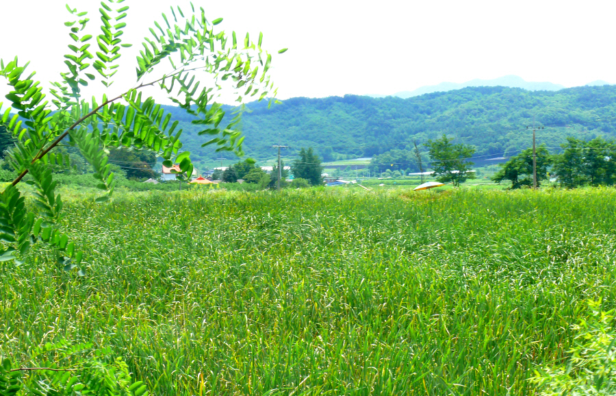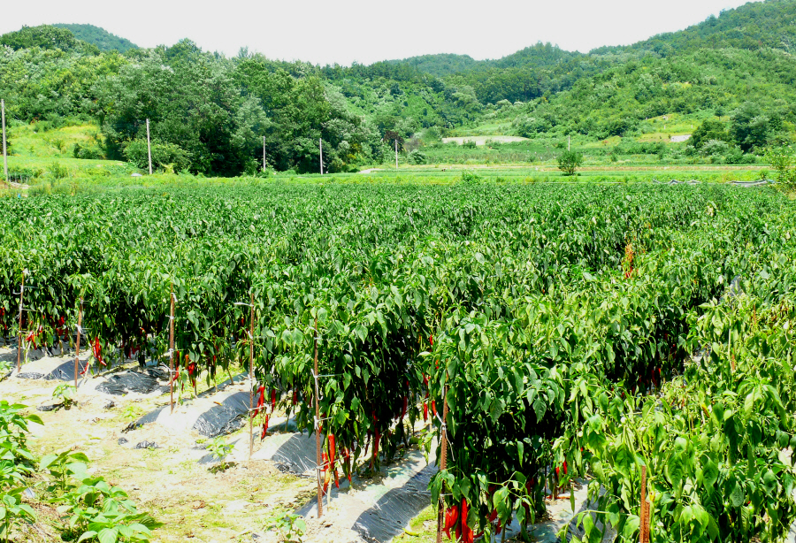 파란 하늘은 벌써 가을이 다가 온것 같은 느낌이 들게 하였고, 고추밭의 고추들은 붉은색이 무거워서 바닥으로 쳐져 있어 보인다.